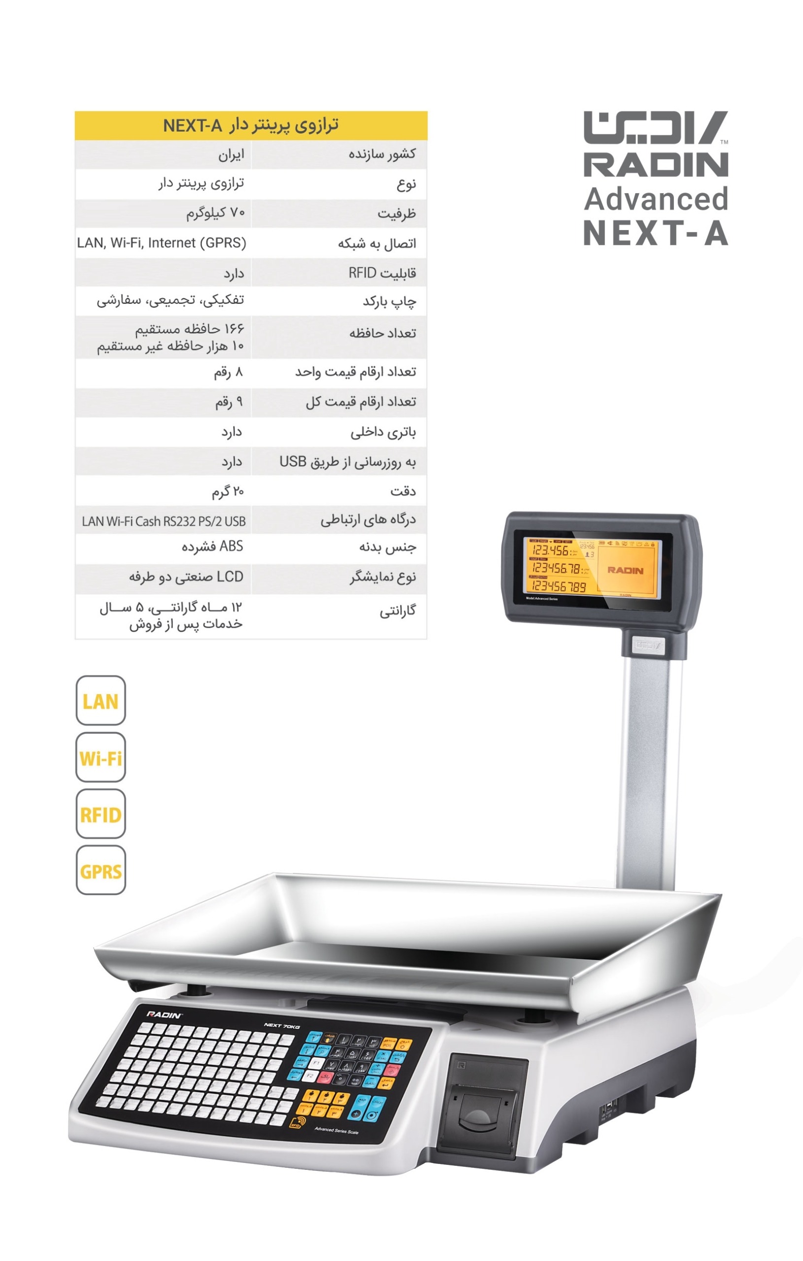ترازو لیبل پرینتر، ستون دار رادین NEXT A ظرفیت 70کیلوگرم